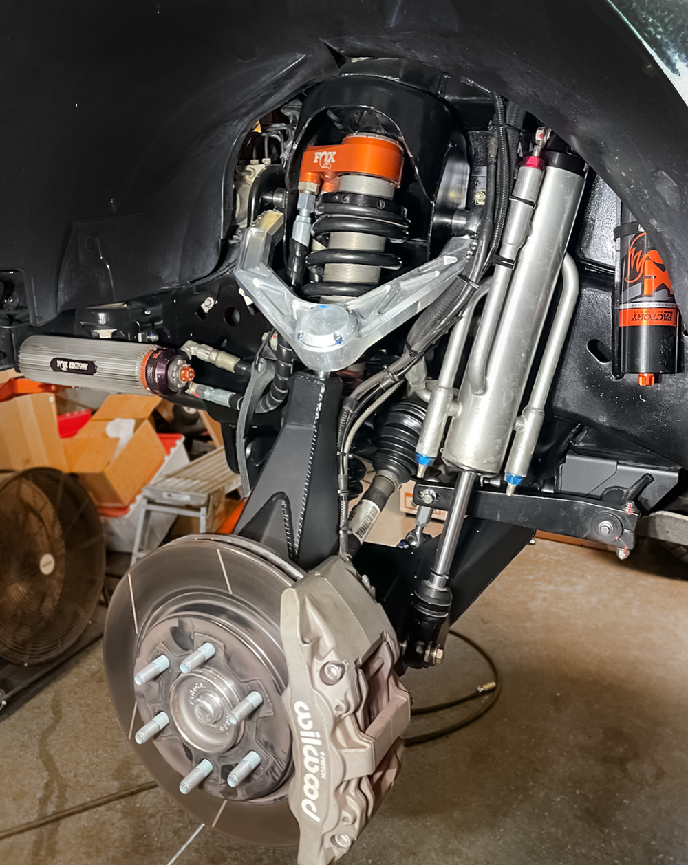 The kit will work with the stock factory front coil shock or any aftermarket shock that will fit in the stock location. That way you can maintain the stock spring tower structure. Keep the live valve stock shock to keep the budget in line or upgrade the Fox aftermarket live valve coil over shock with adjustable coil height with ease.
