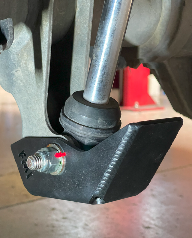 The bolt-on design makes it easy to install the skids by using the shock bolt for strength, while a secondary rear bolt secures the assembly and ensures everything stays aligned under heavy use